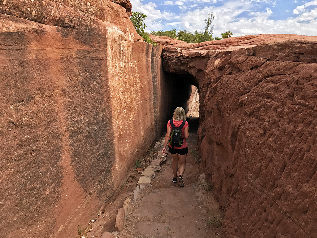 De enige trail die je kan doen zonder begeleiding is de White House Trail en die hebben we dan ook gedaan. Het is niet zo’n zware trail maar je moet toch helemaal de canyonwand afdalen naar de bodem, zo’n 180 meter lager, en daarna weer helemaal naar boven. Het keerpunt is een cliff dwelling, White House, zoals we er in Mesa Verde ook hebben gezien. Om de een of andere reden voelde deze wel authentieker aan, wetende dat aan de meeste houses in Mesa Verde gesleuteld is.