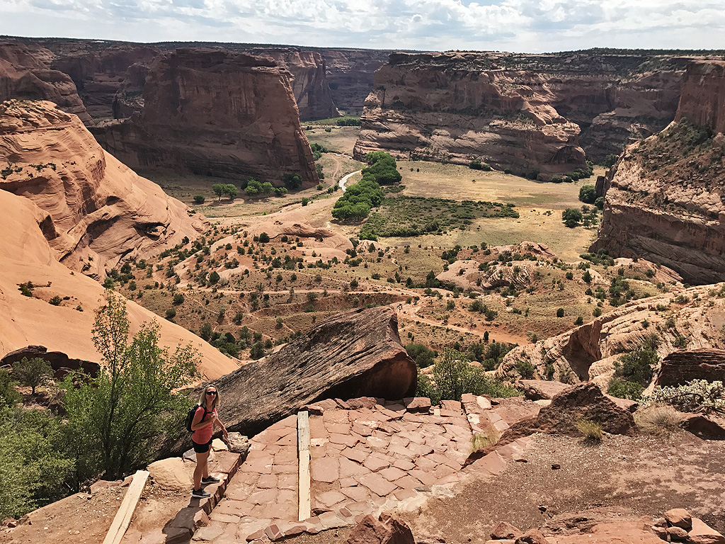 De wandeling naar White House is erg mooi. Vanaf de canyonrand heb je een mooi zicht over de vallei. Door de afdaling sta je er een half uur later ook echt in en dat levert weer andere beelden op. Beneden in de canyon kwamen we weer Navajo’s tegen die hun handgemaakte sieraden en potjes probeerden aan de man te brengen, zonder opdringerig te zijn. Dat zie je op wel meer plaatsen in Navajo-gebied, ook bij Monument Valley.